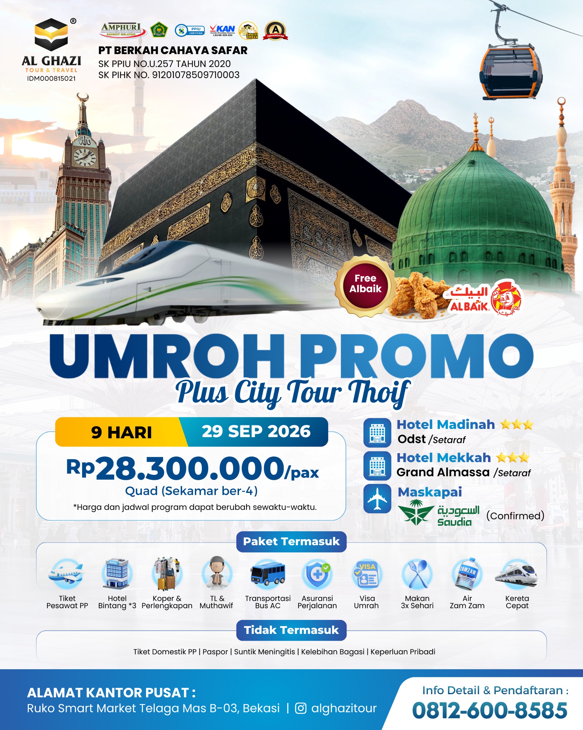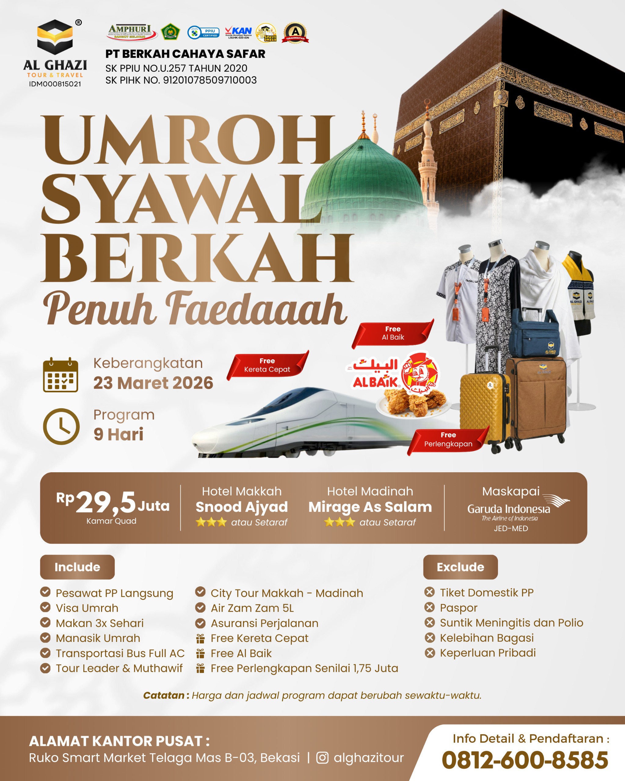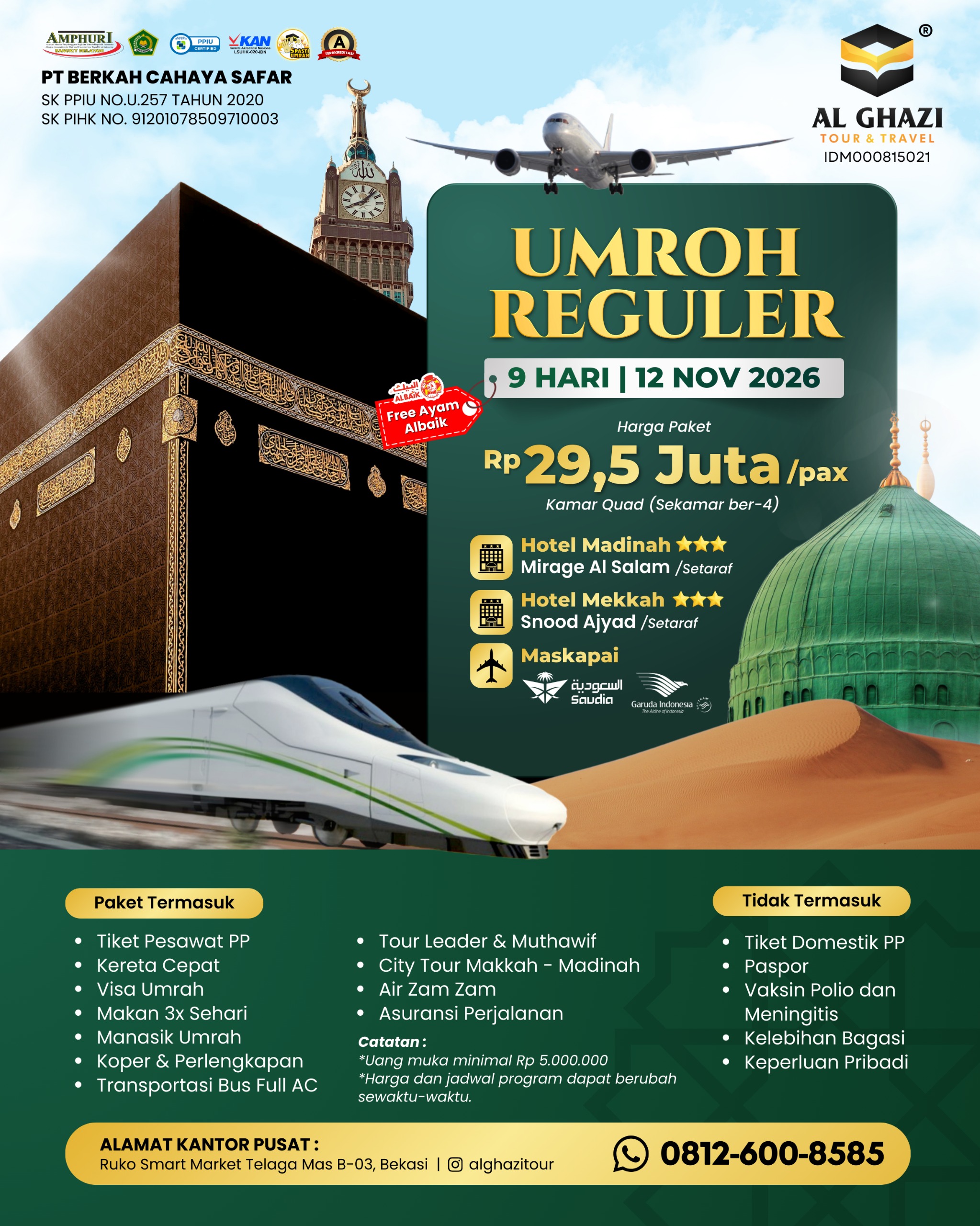 Puji Syukur kepada Allah akhirnya saya bisa melaksanakan ibadah umroh, dan terimakasih buat Al Ghazi Tour yang telah memberikan pelayanan terbaik hingga pulang ke tanah air