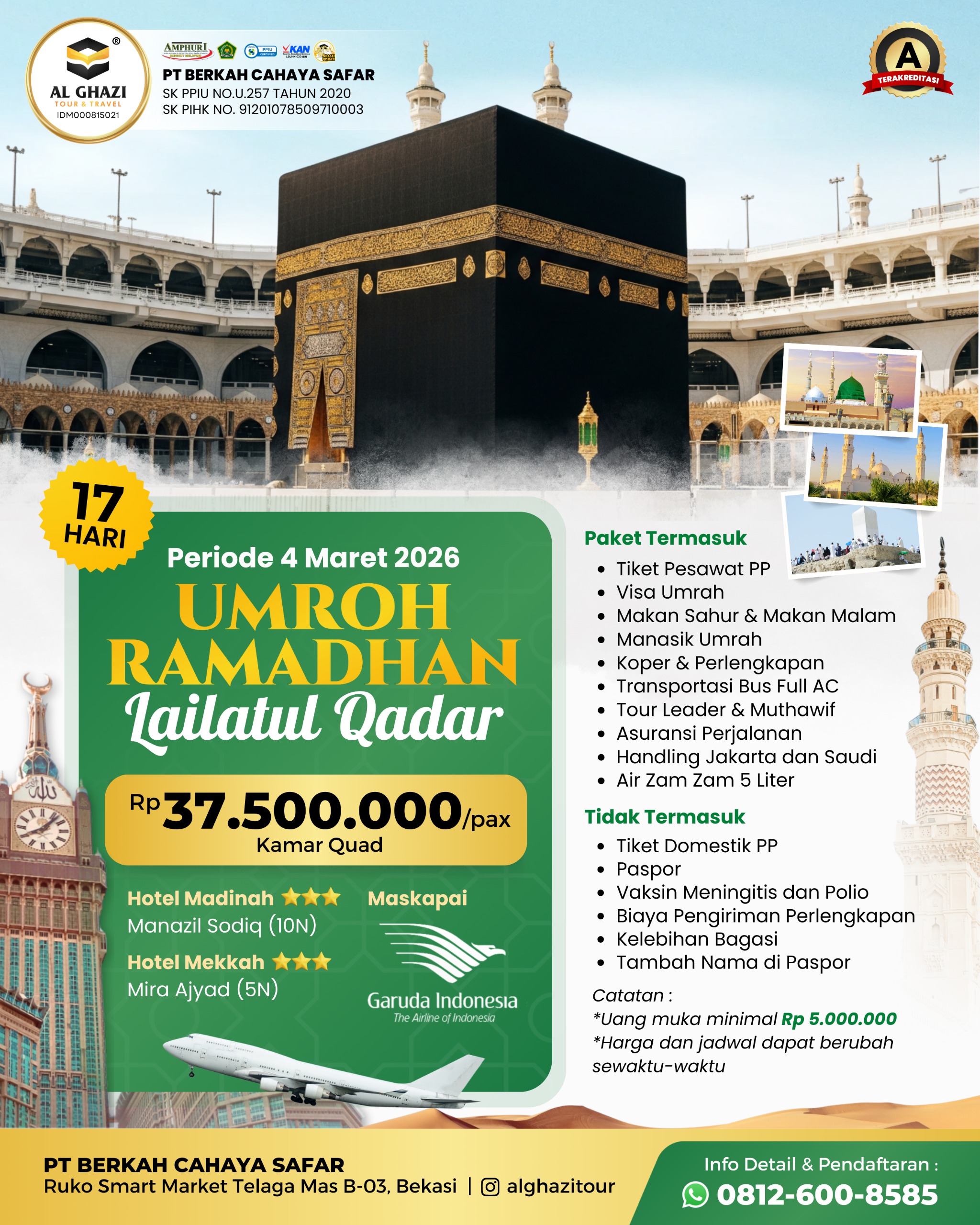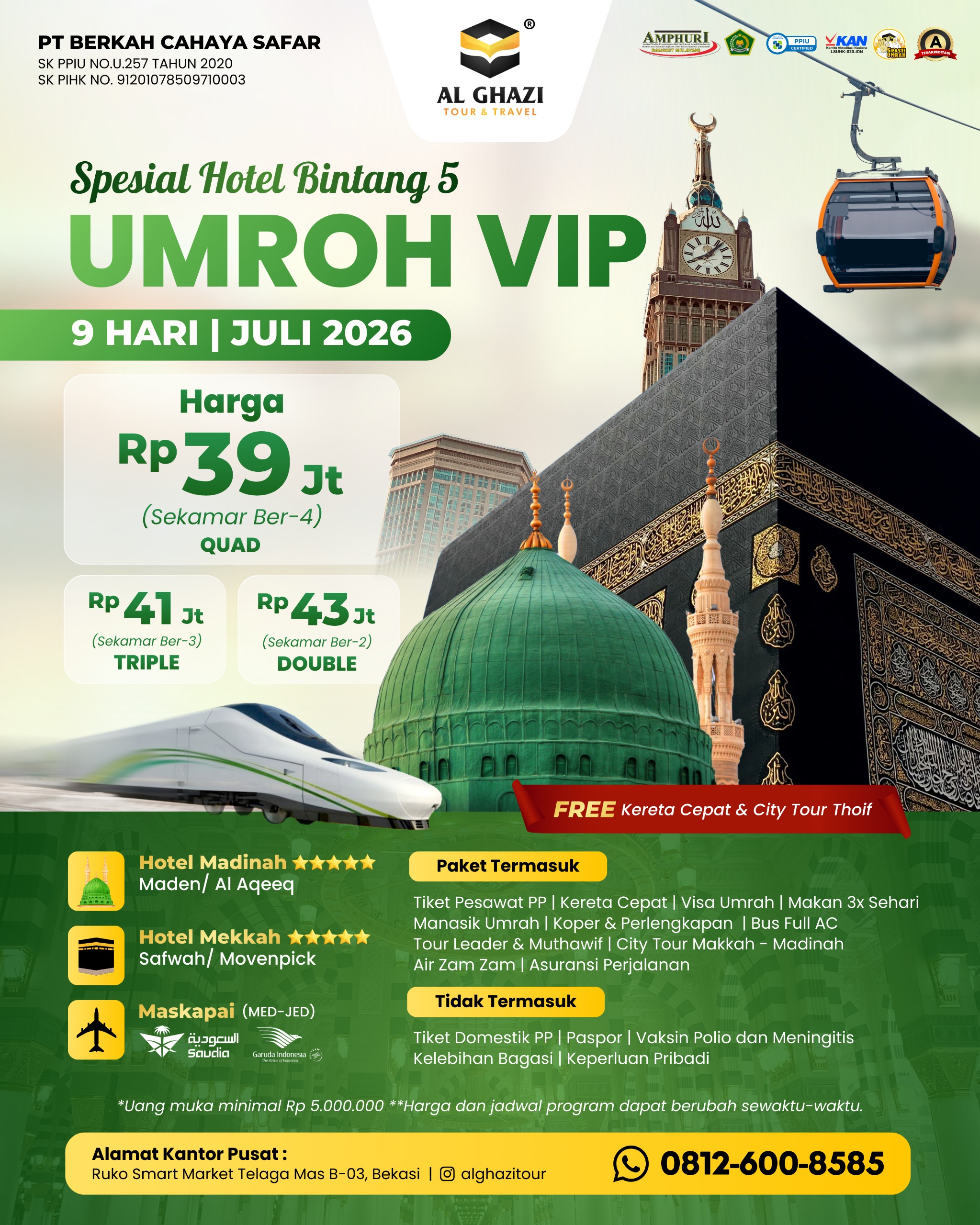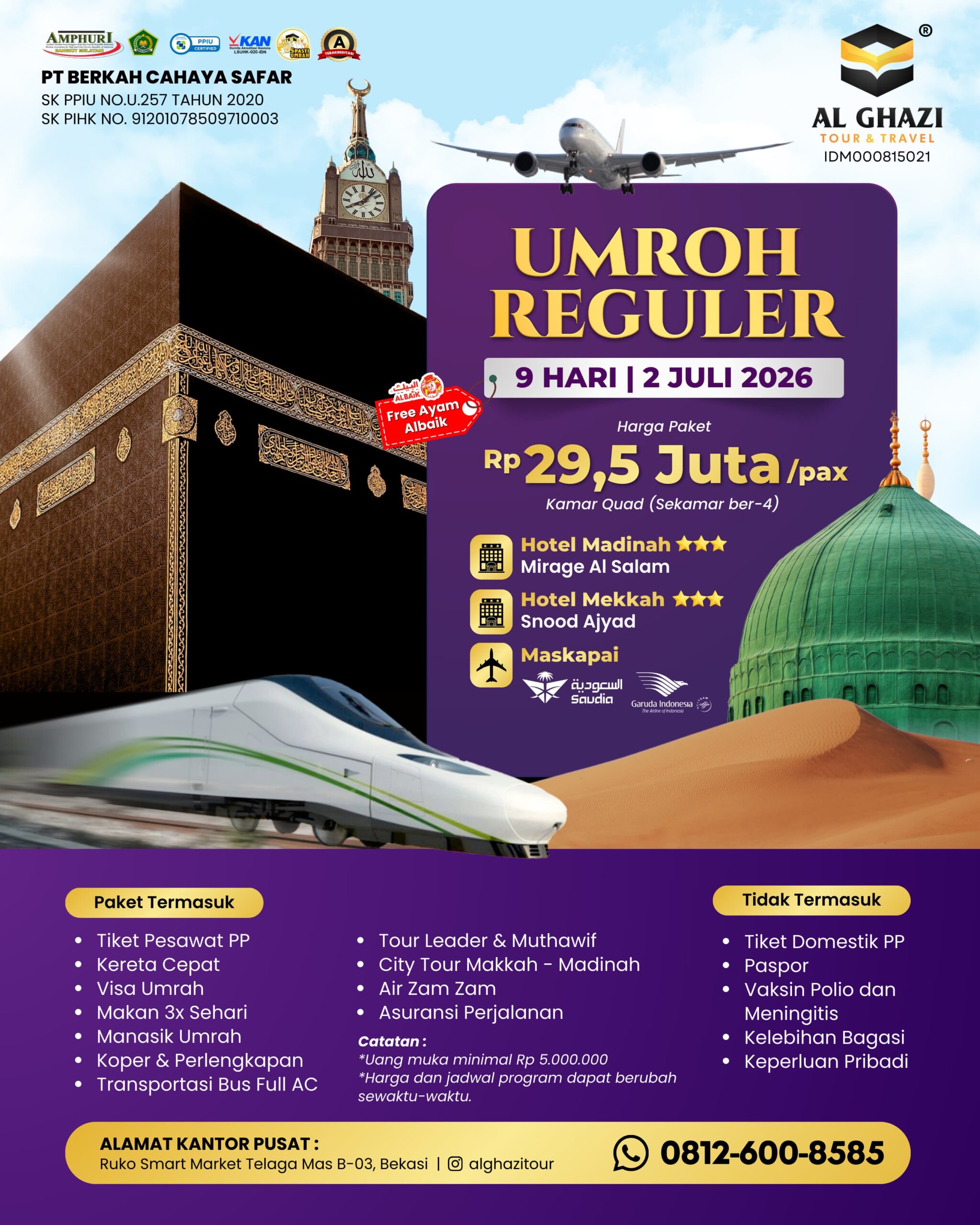 Puji Syukur kepada Allah akhirnya saya bisa melaksanakan ibadah umroh, dan terimakasih buat Al Ghazi Tour yang telah memberikan pelayanan terbaik hingga pulang ke tanah air